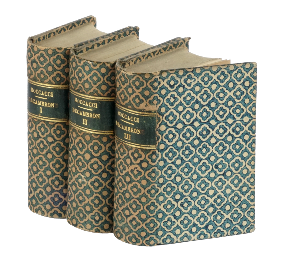 Lotto composto di 14 opere in miniatura, principalmente di letteratura italiana del XIX e XX secolo. Compongono il lotto: 1) Pulci Luigi, Il Morgante [...] testo e note a cura di Guglielmo Volpi. Vol I (-III). Firenze: Sansoni, 1904. 3 volumi in-24° (mm 105x70). 2) Boccaccio Giovanni, Il Decameron. Volume primo (-terzo). Firenze: Barbera, 1888. 3 volumi in-24° (mm 106x60). 3) Id., Fiammetta. Firenze: Barbera, 1884. 4) Manzoni Alessandro, Le poesie. Firenze: Barbera, 1888. 5) Foscolo Ugo, Le poesie. Volume primo (-secondo). Firenze: Barbera, 1884. Elenco completo disponibile su richiesta. (19)Interessante raccolta di volumi in piccolo formato, editi principalmente da Barbera e Sansoni a cavallo tra il XIX e il XX secolo.