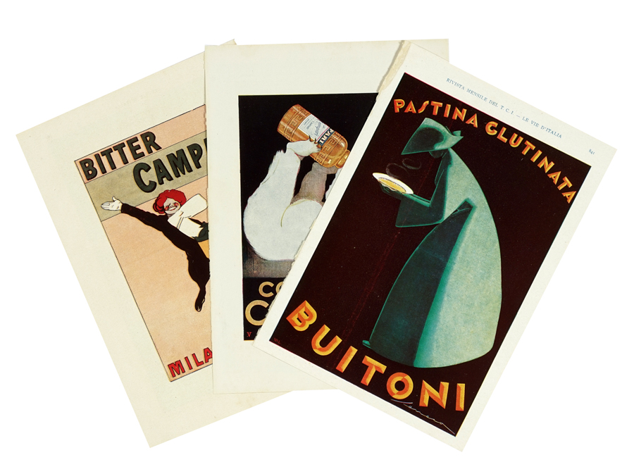 Raccolta di 66 inserti pubblicitari per Le Vie d'Italia, rivista mensile del Touring Club Italiano. Anni ’20-’30. Carte conservate in parte in raccoglitore. Alcune pubblicità sono doppie. Dimensioni: 240x165 mm ca. (66)Il mensile Le Vie d'Italia, rivista illustrata di geografia, viaggi e fotografia, venne pubblicata dal Touring Club Italiano dal 1917 al 1968. Nella raccolta: Buitoni, Cordial Campari, Bitter Campari, Perugina, Accumulatori Hensemberger, Lampo benzina superiore, Lloyd Triestino, Mamie (pastiglia Dower Polli), Magnesia Polli, Shell Motor Oil, Orologi Miroglio, Brolio Chianti Classico, Spumanti Cinzano, Sestriere, Salga Pneumatici, Succo di urtica, Fiat, Mobiloil, Carrozzerie Siamic, Richard Ginori, Motori fuoribordo Caille, Esso, Olio Sasso ecc. La pubblicità di alcuni prodotti è stata realizzata da più artisti (es. Campari, Shell, Esso ecc.).