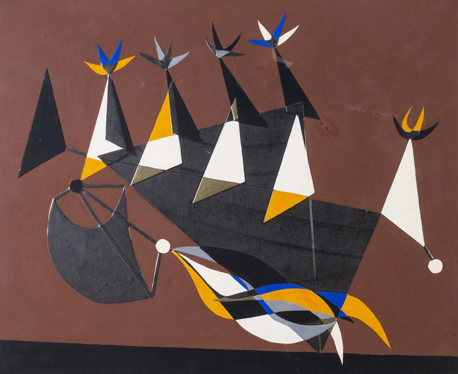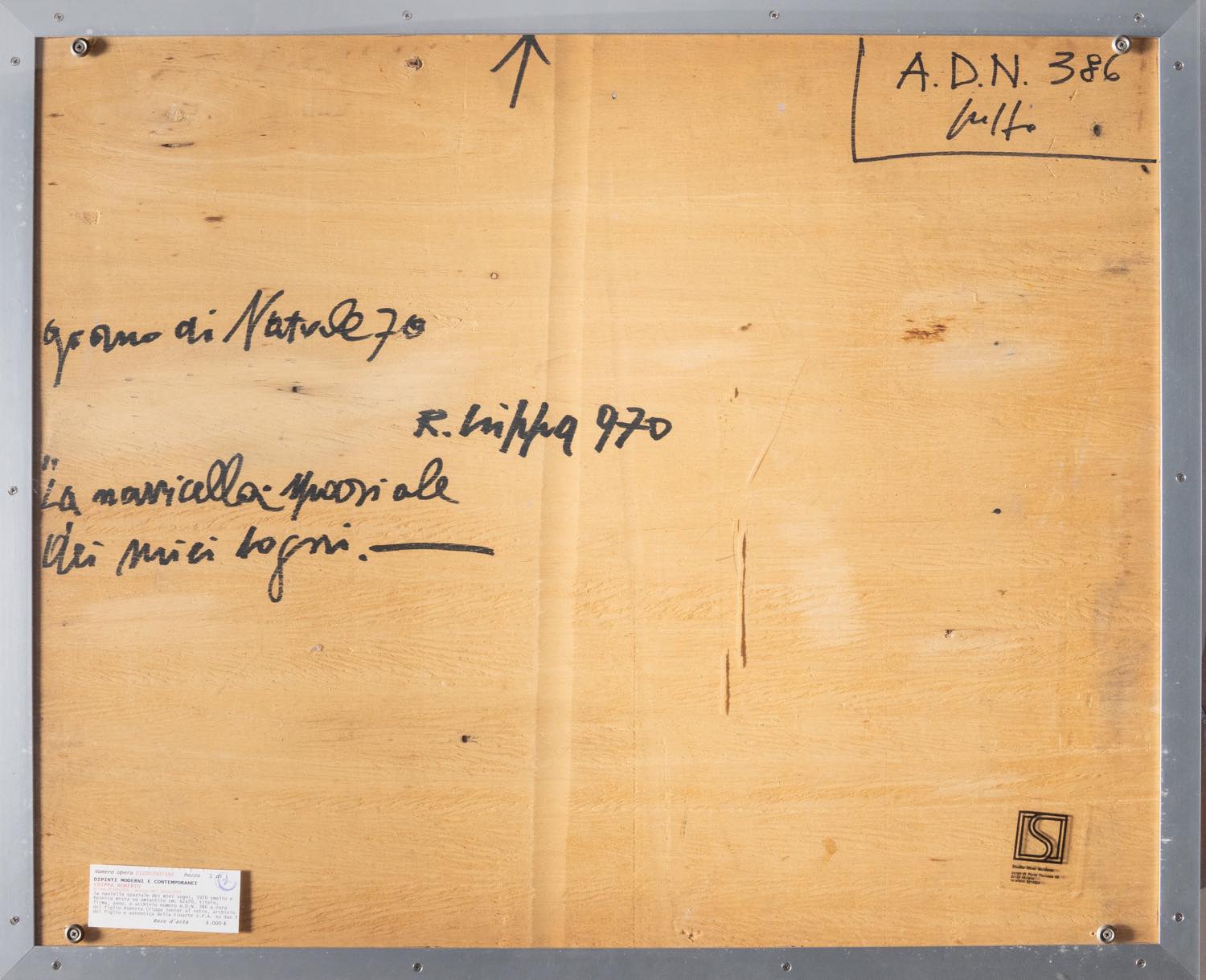 Roberto Crippa (Monza 1921 - Bresso 1972), “La navicella spaziale dei miei sogni”, 1970.Smalto e tecnica mista su amiantide su tavola, reca al retro iscrizione “Giorno di Natale 70”, firma, titolo, iscrizione “A.D.N. 386”, firma dell’artista ed etichetta Studio Nino Soldano - Milano, H cm 72x60