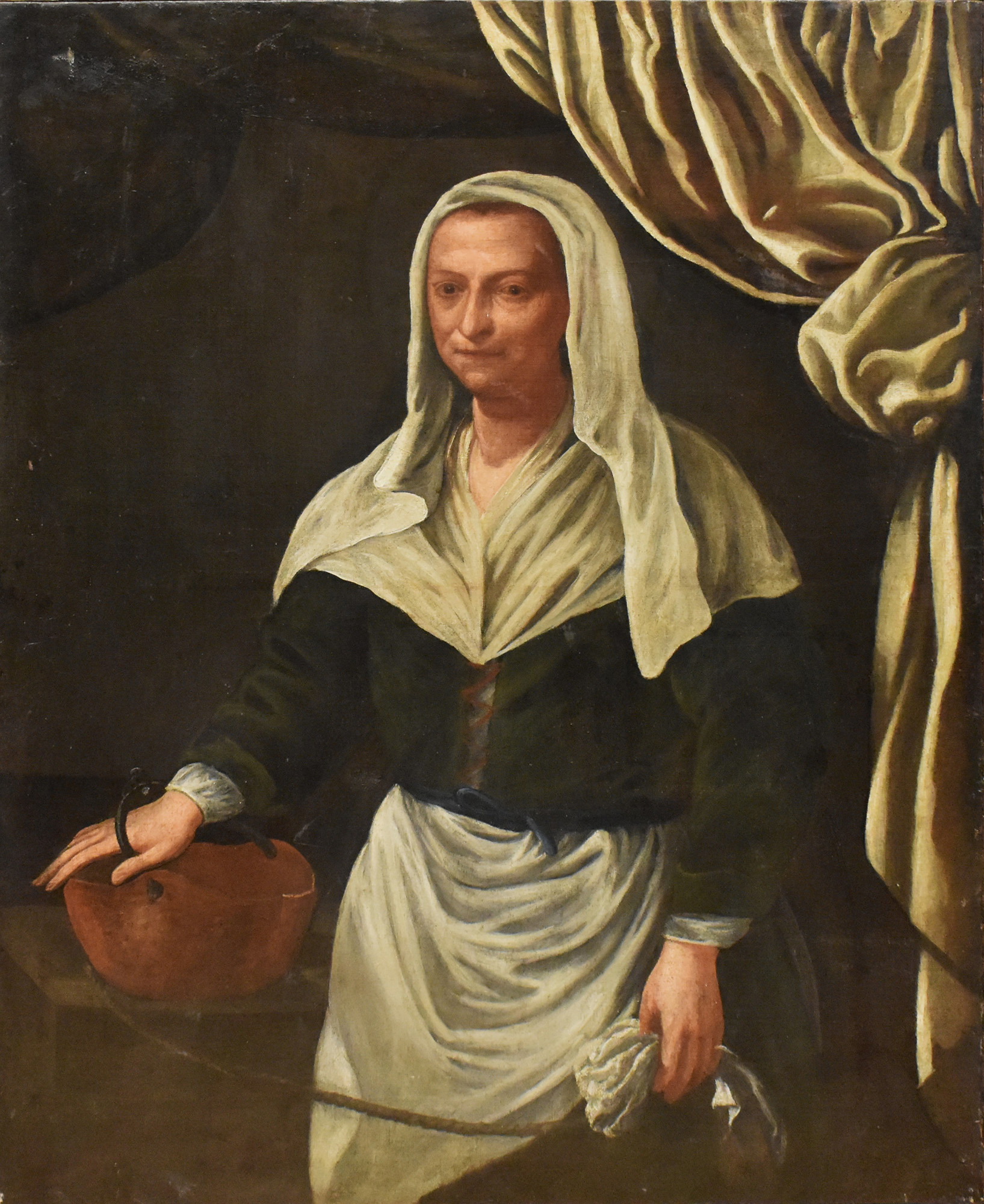 Olio su tela "Giovane donna in cucina" sec.XVII