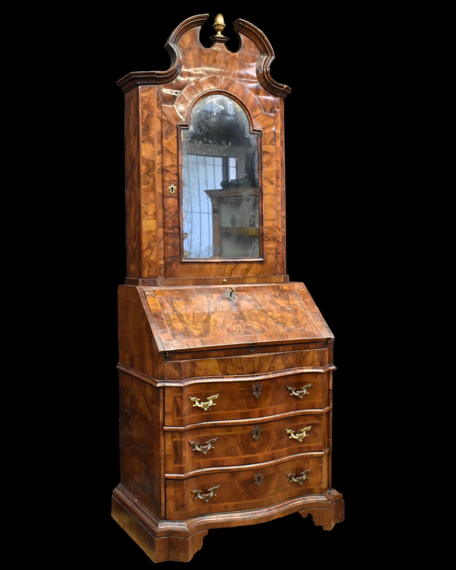 Trumeau lastronato in noce e radica, mosso sul fronte, Venezia sec.XVIII
