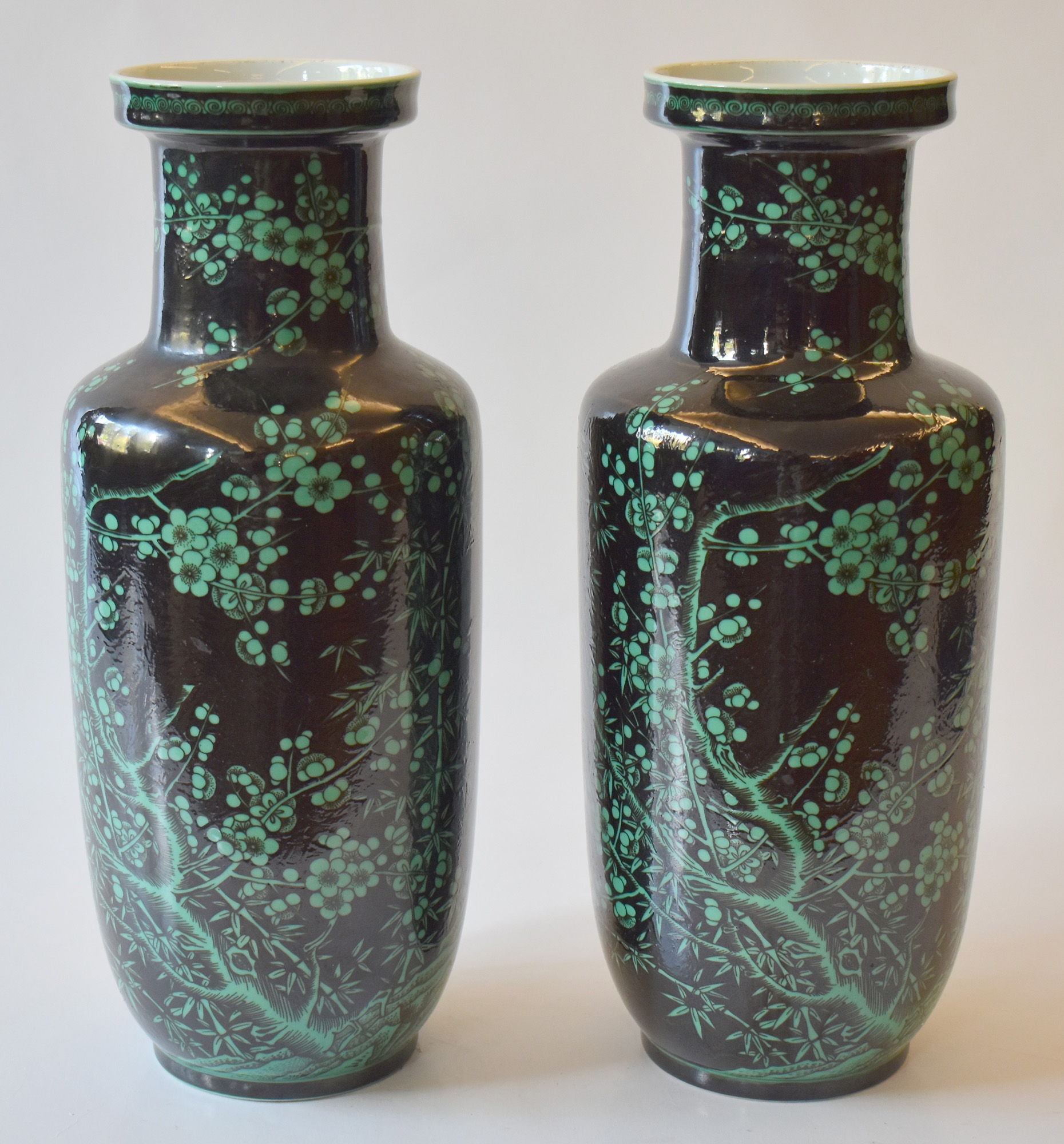 Cina coppia di vasi in porcellana decorati nei modi della famiglia nera