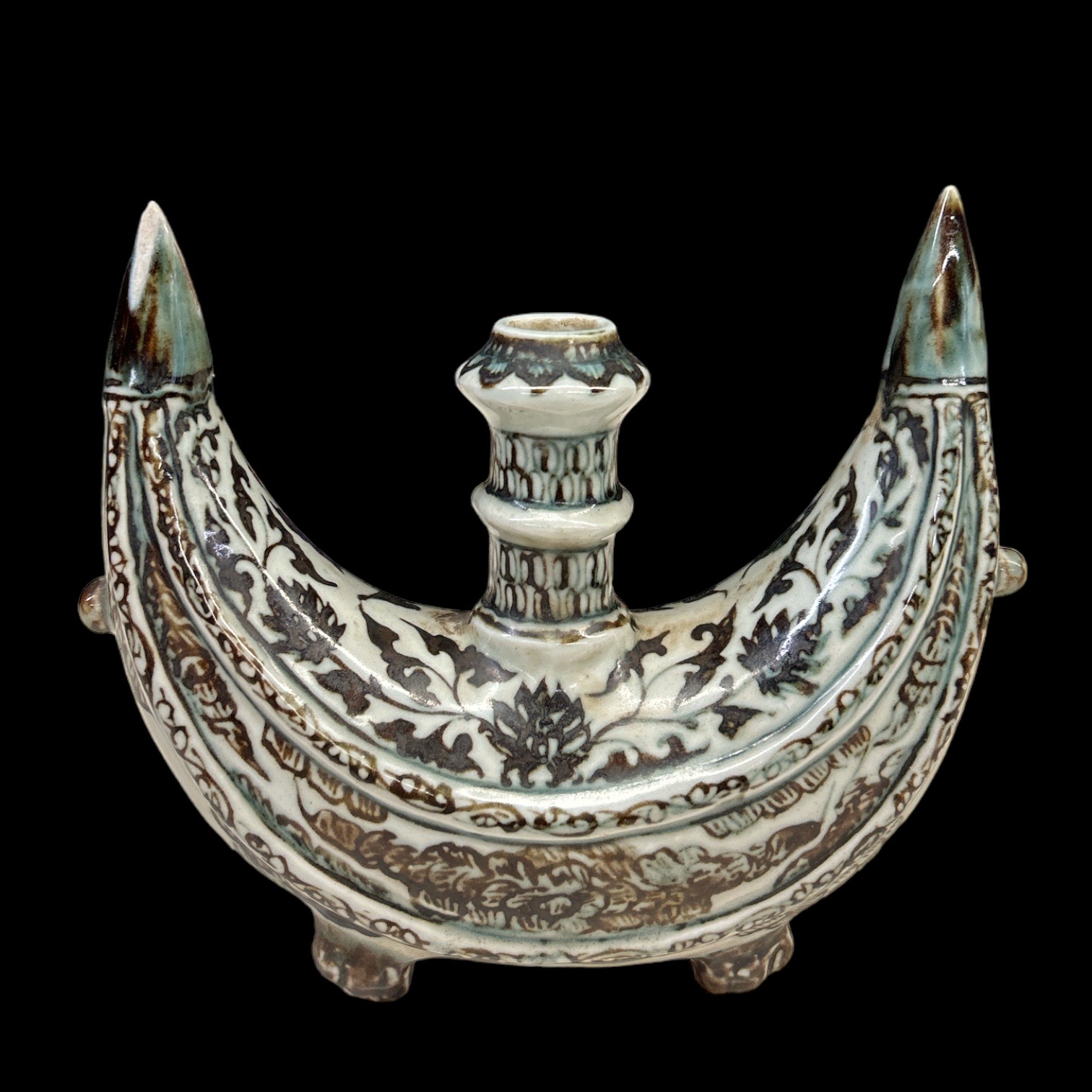 Cina fiaschetta del pellegrino in porcellana, decorata con motivi vegetali