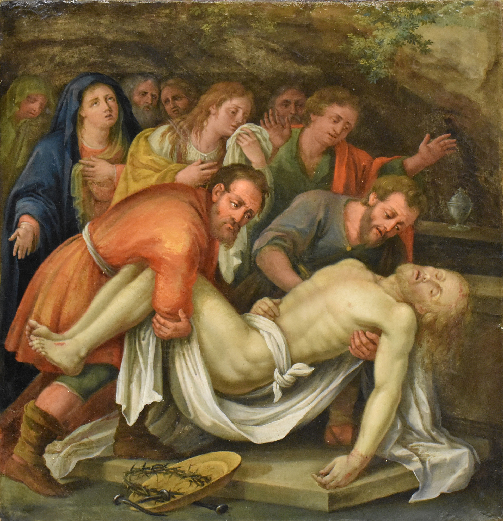 olio su tela "Deposizione" fine sec.XVI<br>cm.