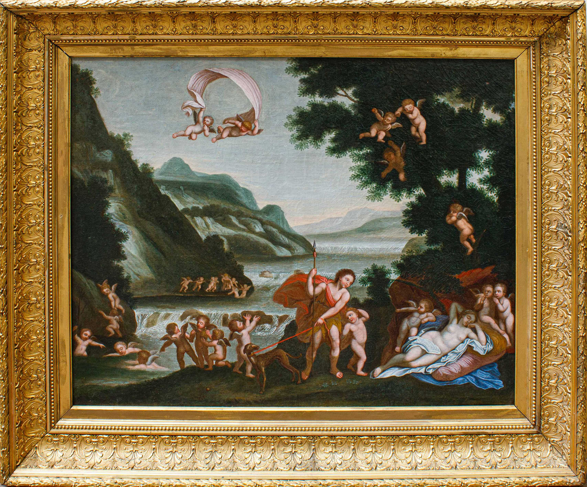 "Adone e Venere" olio su tela, seguace di Francesco Albani (Bologna 1578 - 1660)