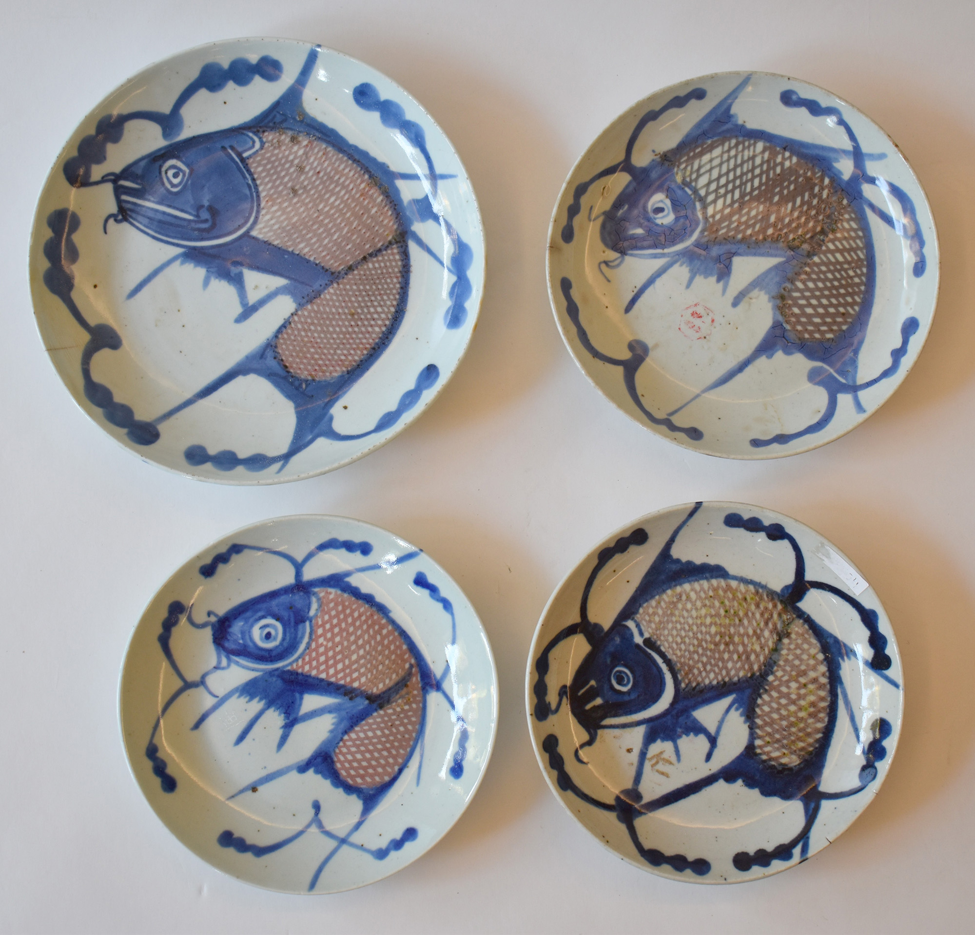 Cina n.4 piatti vari in porcellana decorati con pesci
