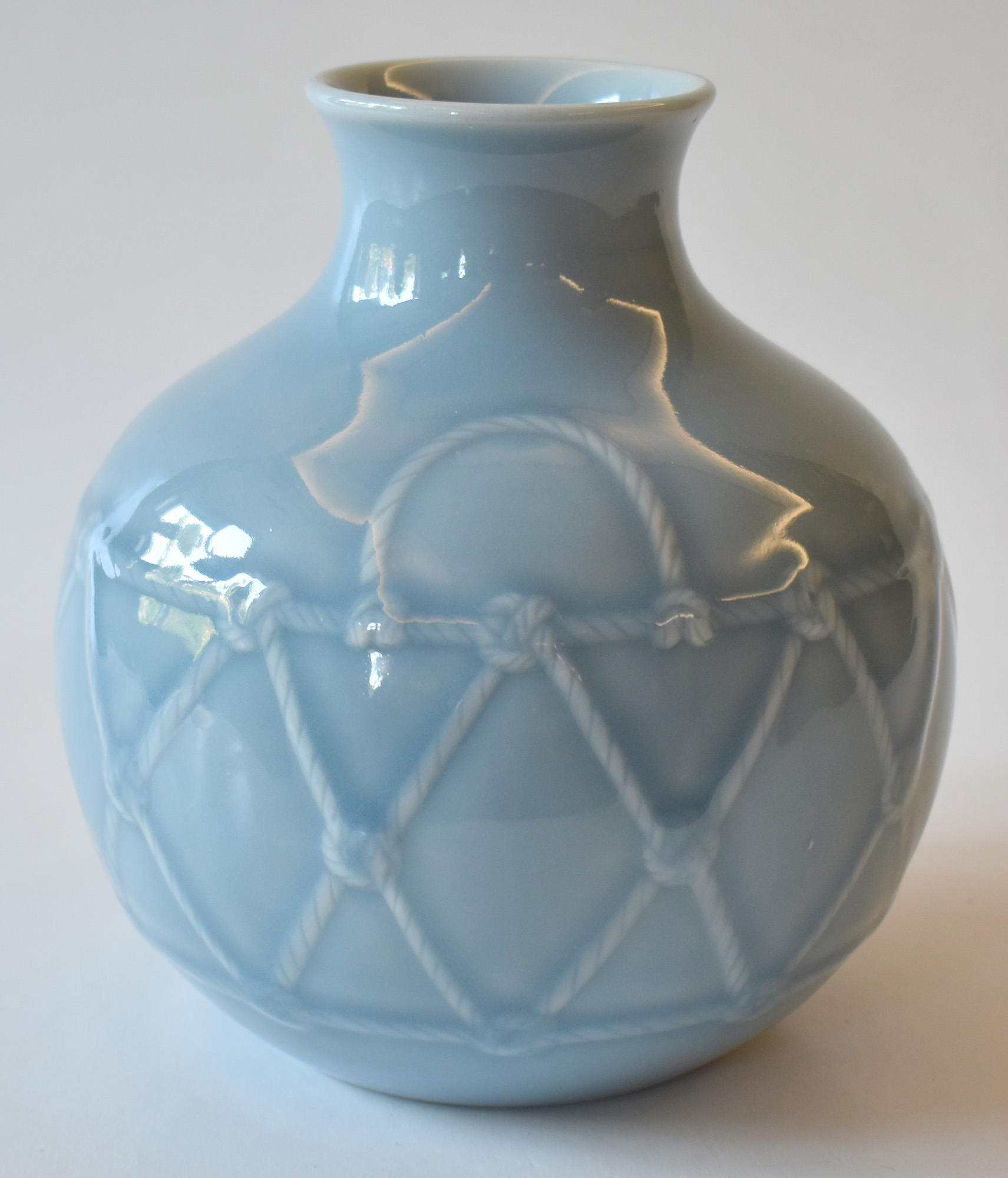 Cina vaso in porcellana azzurra con decoro in rilievo