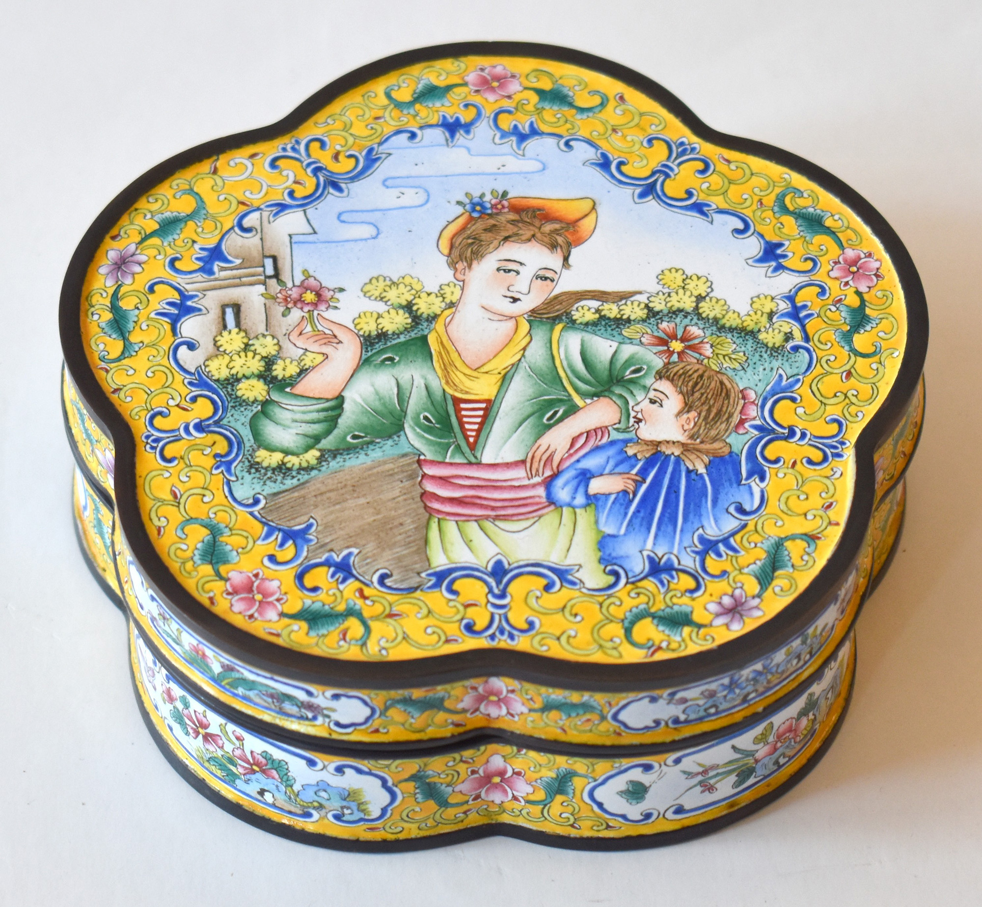 Lotto 0199 | Cina scatola smaltata <br>12x12x h 3,8 cm