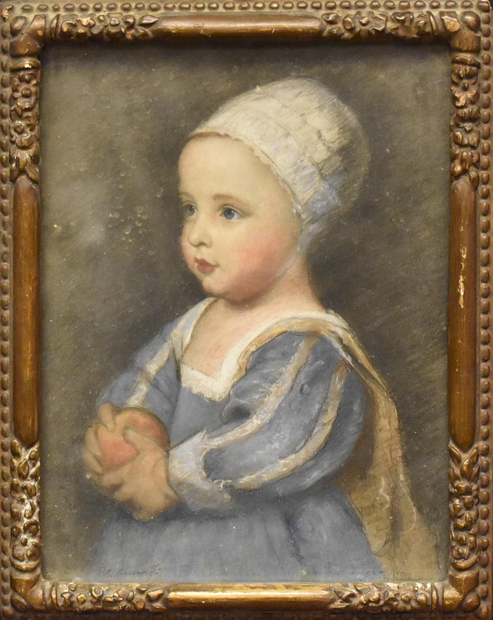Pastello "Bimba con mela" sec.XIX<br>cm. 23x17