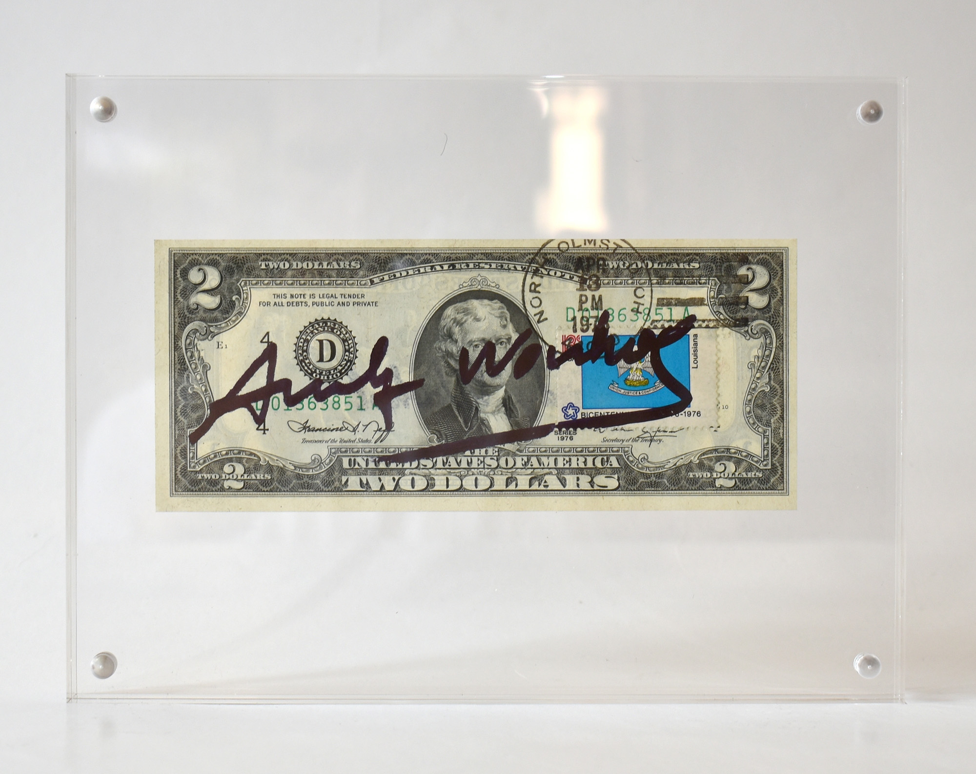 Andy Warhol (1928-1987) banconota da 2 dollari autografata al centro.