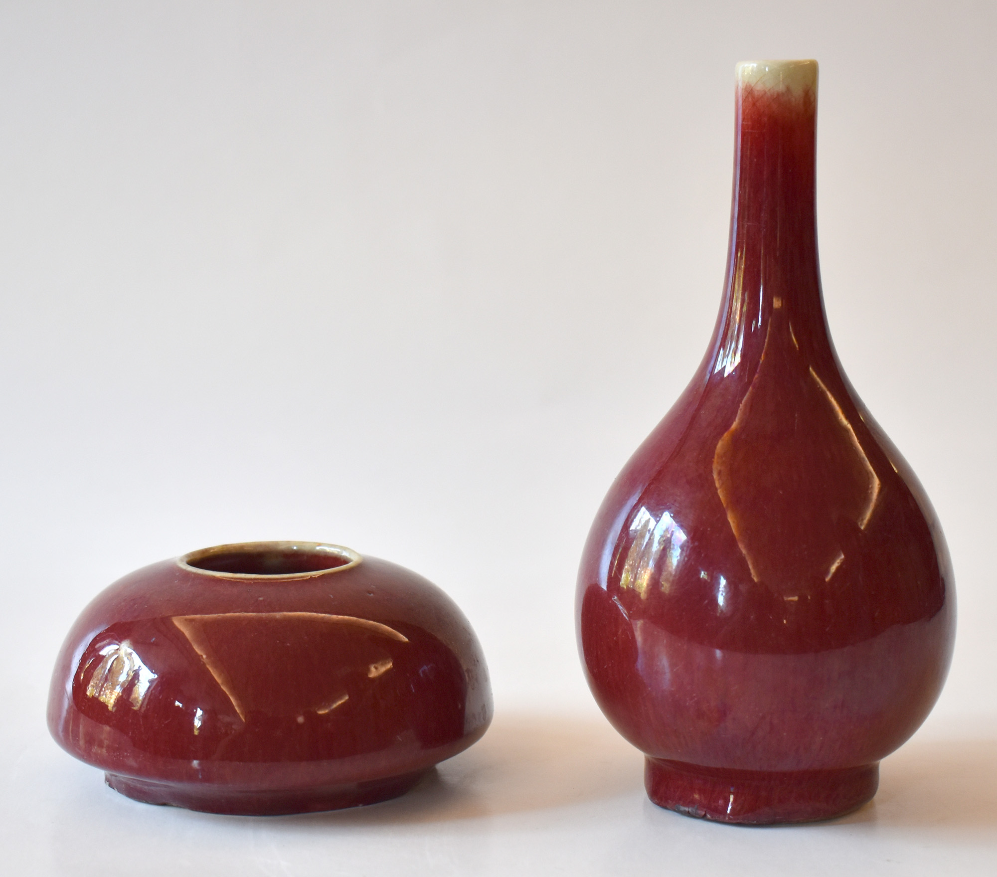 Cina n.2 oggetti in porcellana sangue di bue<br>h