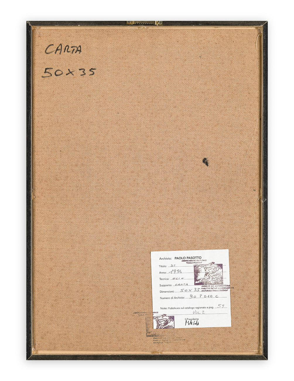 Etichetta dell'Archivio Paolo Pasotto al retro