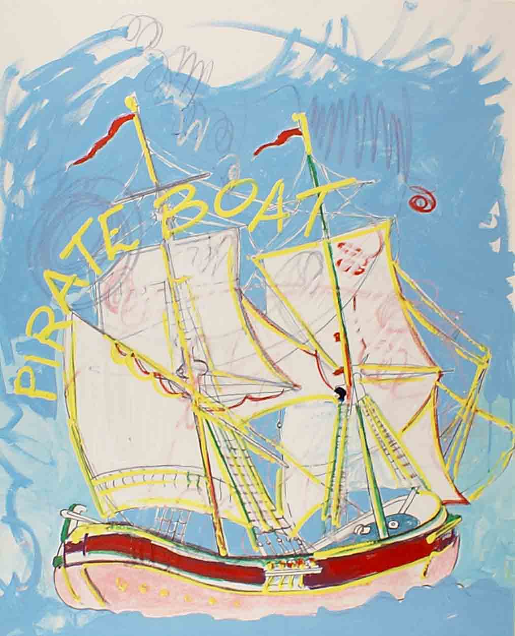 Enrico Manera (Asmara 1947), "Pirate Boat", olio su tela, cm. 100x80, firmato e datato 1997 sul retro.