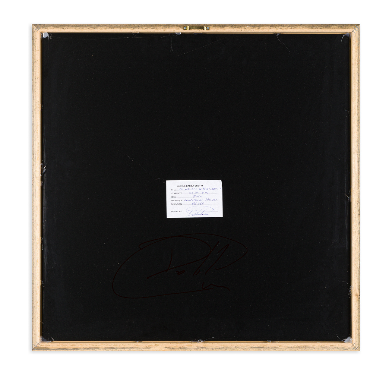 Firma, titolo, datazione, tecnica, misure e numero di archivio al retro