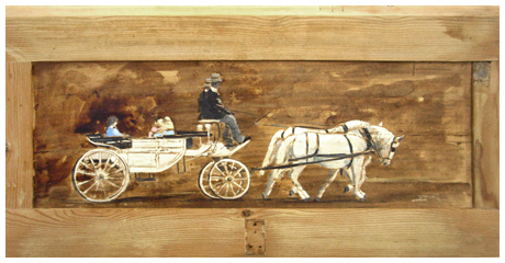 MASSIMO LOMI Livorno 1953 Nostalgica Londra 2013 Tempera su tavola 38,3 x 74,5. Firma in b. a d.; sul verso etichetta e timbro studio dell’artista. Autentica dell’autore su foto in esecuzione.