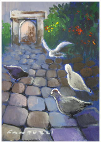 ELIANO FANTUZZI Modena 1909 – Verona 1987 Senza titolo Olio su tela 40 x 30. Firma in b. a s.; sul verso doppia firma + timbri galleria G.Cesare, Milano Marittima.