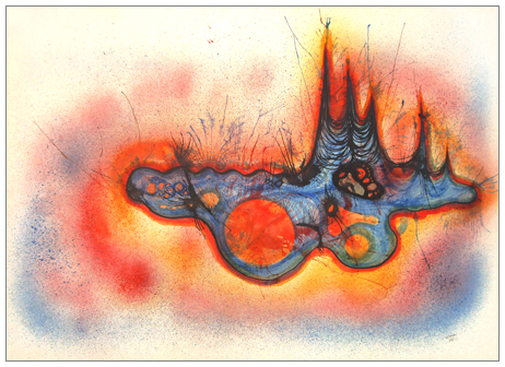 FABIO DE POLI Genova 1947 Senza titolo 1965 Colori a aerografo e t.m. su cartoncino 69,5 x 97,5. Firma e data in b. a d.