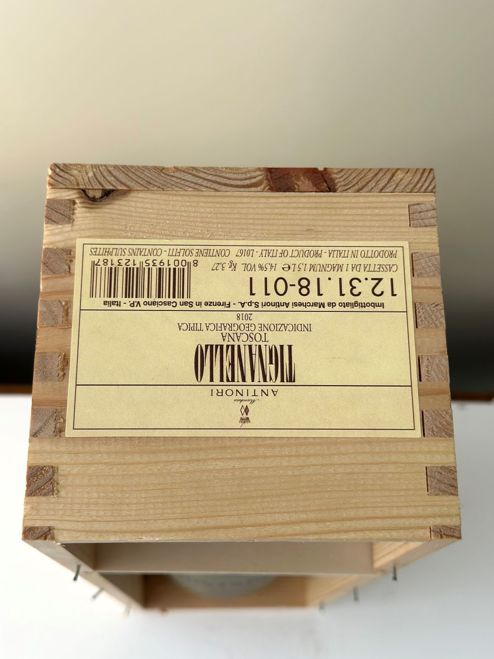 Toscana, Tignanello IGT - 1 bottiglia (bt) annata 2018. Livello: entro il collo (WN), livello di colmatura standard. Confezione: scatola di legno originale (OWC). Condition report: confezione in perfette condizioni.