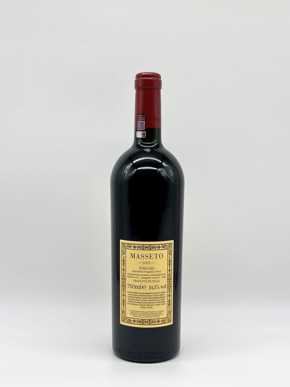 Toscana, Masseto IGT - 1 bottiglia (bt), annata 2015. Livello: entro il collo (WN), livello di colmatura standard. Condition report: etichetta e capsula in perfette condizioni.