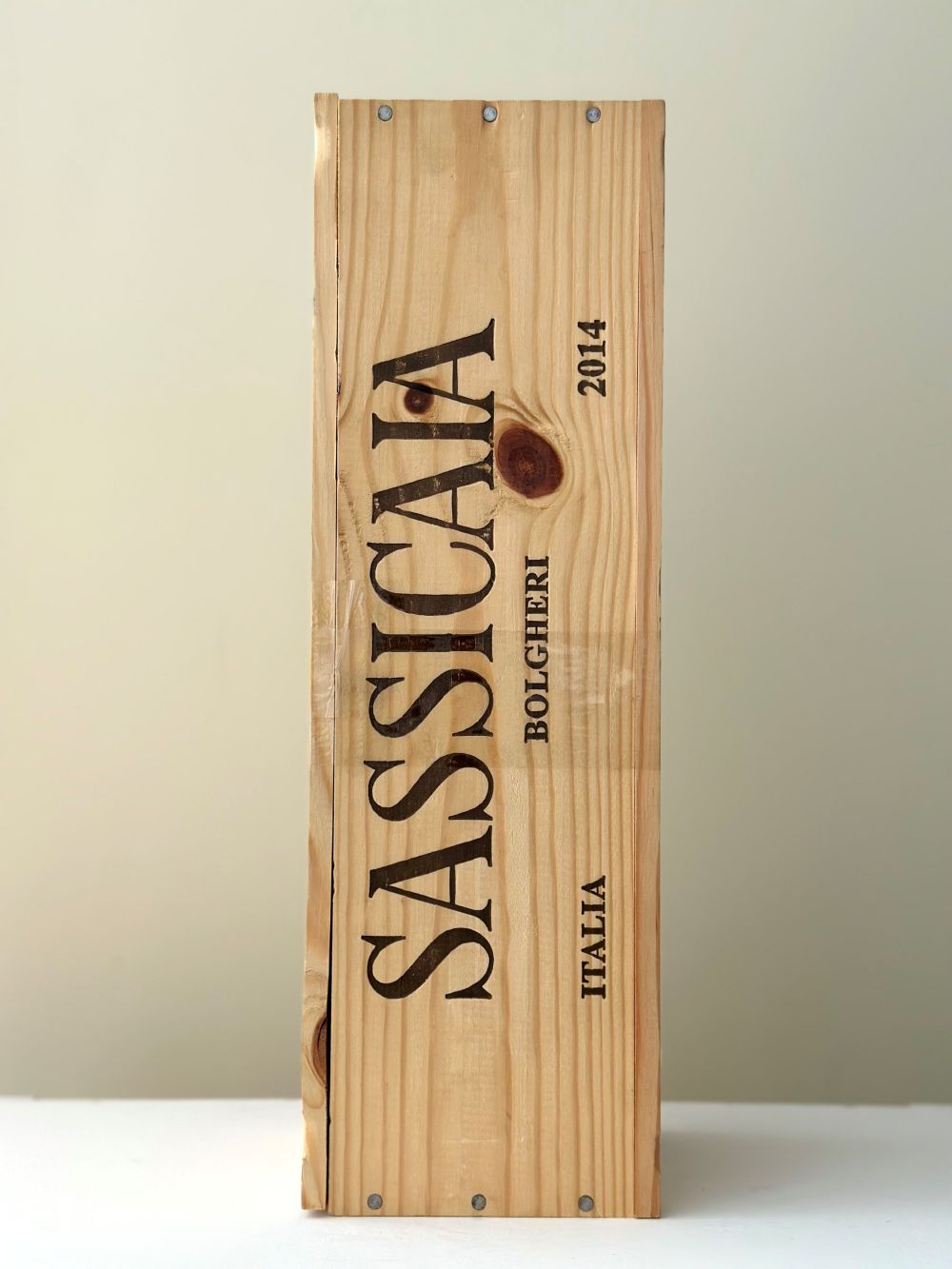 Toscana, Sassicaia DOC - 1 bottiglia (bt) annata 2014. Livello: entro il collo (WN), livello di colmatura standard. Confezione: scatola di legno originale (OWC). Condition report: confezione leggermente usurata.