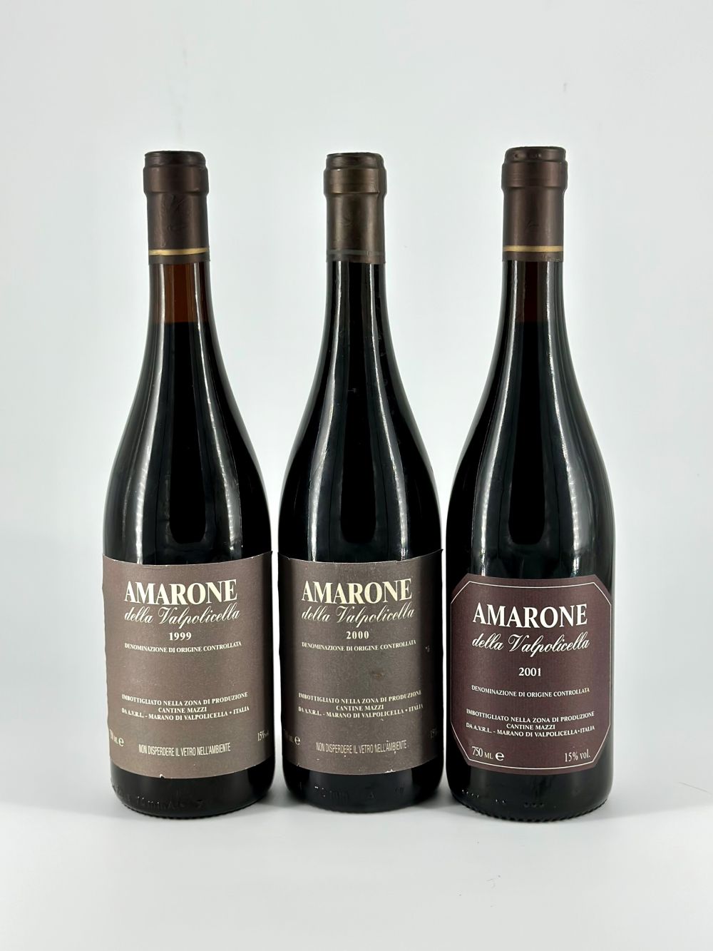 Veneto, Amarone della Valpolicella DOC - 3 bottiglie (bt), annate 1999 - 2000 - 2001. Livello: entro il collo (WN), livello di colmatura standard. Condition report: etichetta e capsula in ottime condizioni.