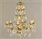 Lampadario a sei luci in metallo dorato decorato a motivo vegetale con gocce...