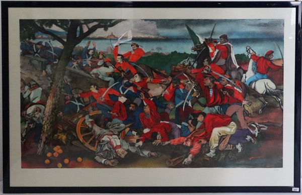 Renato Guttuso "La battaglia di Ponte Ammiraglio" acquaforte e acquatinta a col