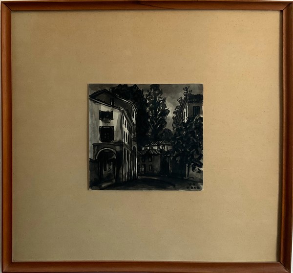 Tono Zancanaro "Padova: via S. Eufemia" 1959 china acquerellata su carta cm 19x1