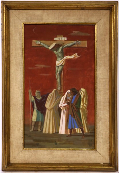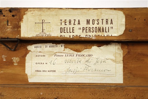 Luigi Filocamo "La morte di Gesù" tecnica mista su tela cm 61x35 Tracce di etic