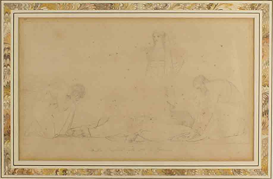 John Flaxman (York 1755 - Londra 1826), "Clitennestra si applaude della morte di Agamennone", matita e china su carta, cm. 20x33.