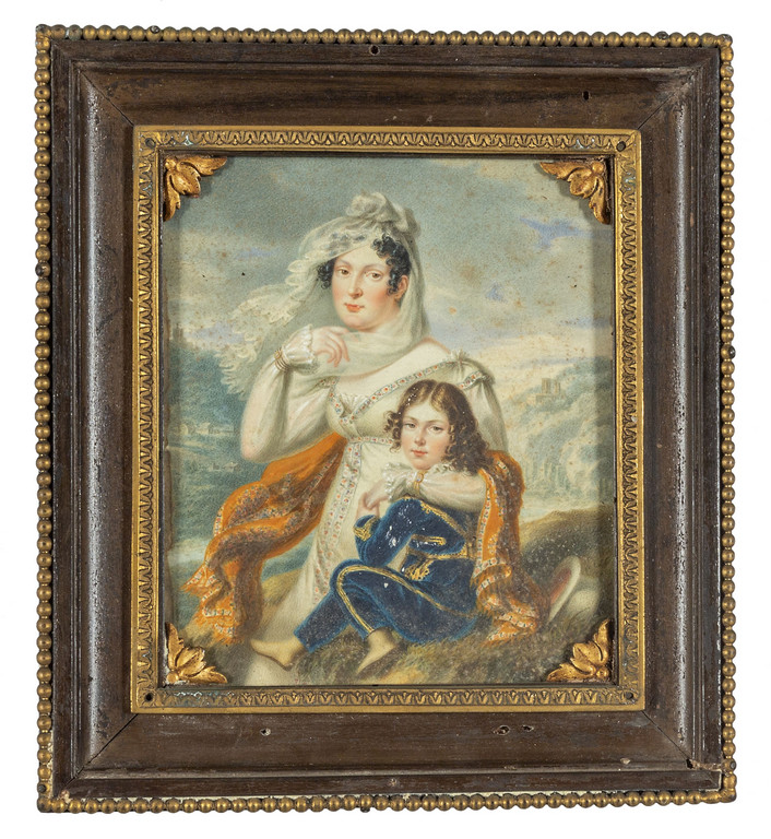 'Maria Anna Bonaparte detta Elisa Principessa francese e sorella minore dell'Imperatore Napoleone Bonaparte' grande miniatura su carta inizi sec.XIX
