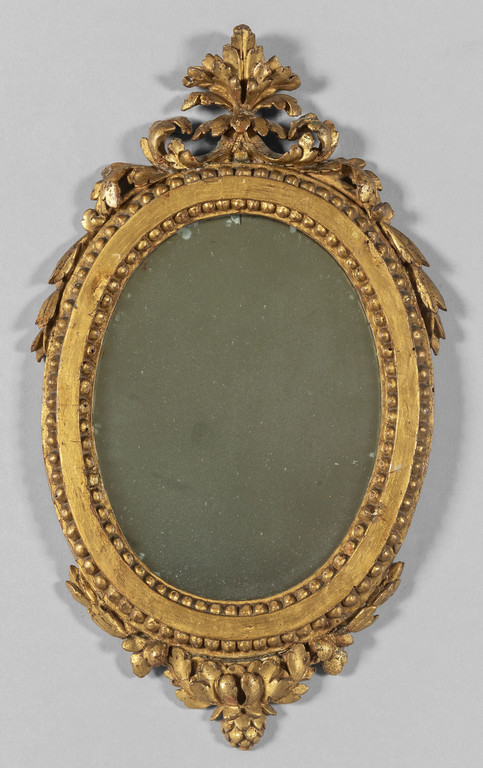 Specchierina Luigi XVI ovale in legno intagliato e dorato Genova sec.XVIII
