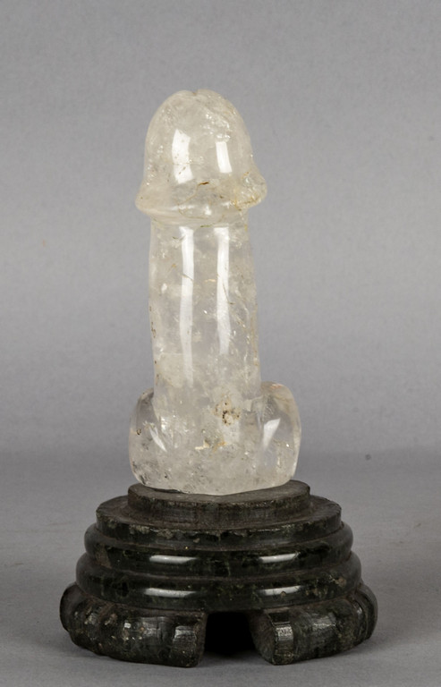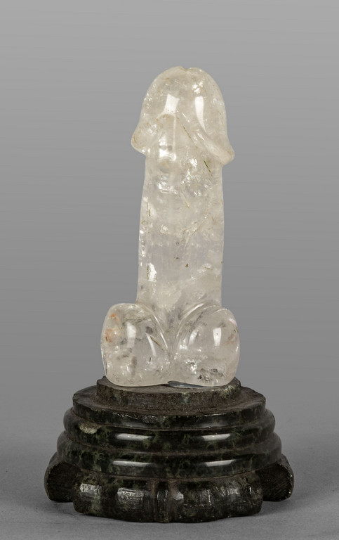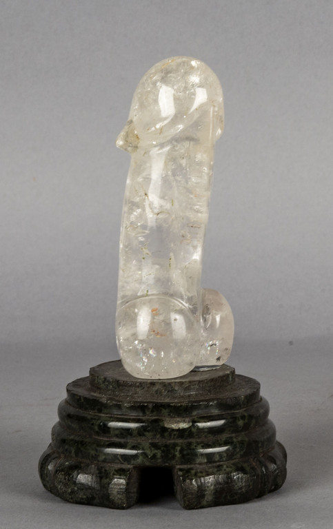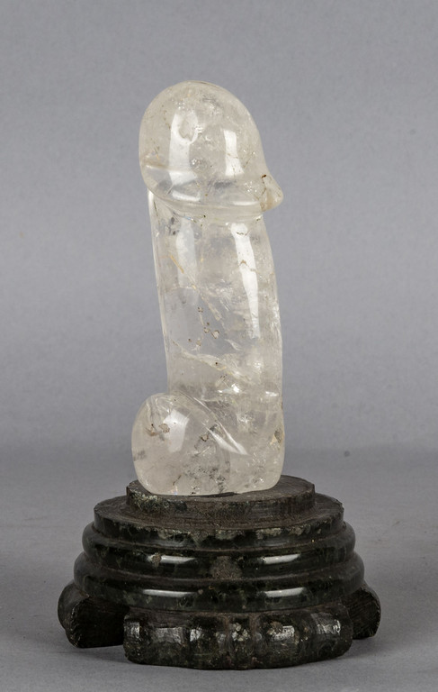 Fallo scultura in cristallo di rocca poggiante su base in marmo