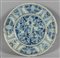 Piatto in maiolica bianco e blu a decoro calligrafico naturalistico marca Chiodo Savona sec.XVII