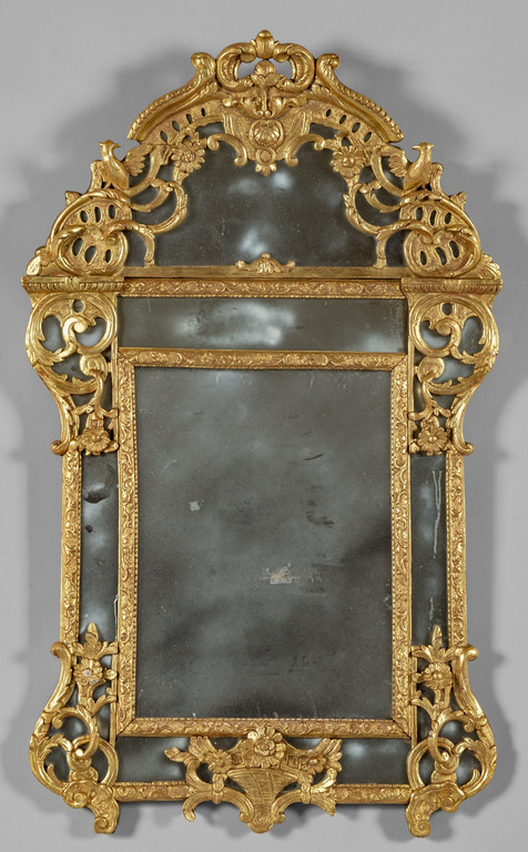 Specchiera Luigi XIV in legno intagliato e dorato con controspecchi Francia sec.XVIII