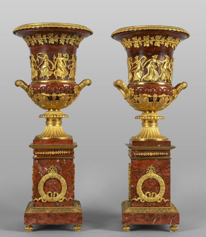 Coppia di vasi in marmo rosso e bronzo dorato Francia fine sec.XIX