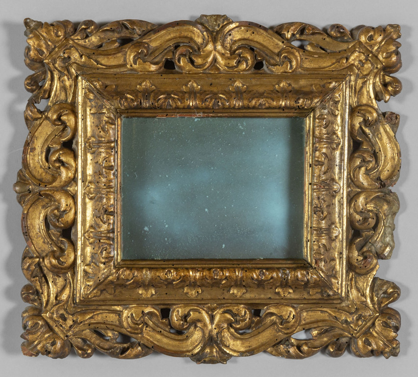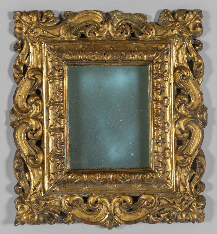 Cornice Luigi XIV in legno finemente intagliato e dorato Bologna sec.XVII