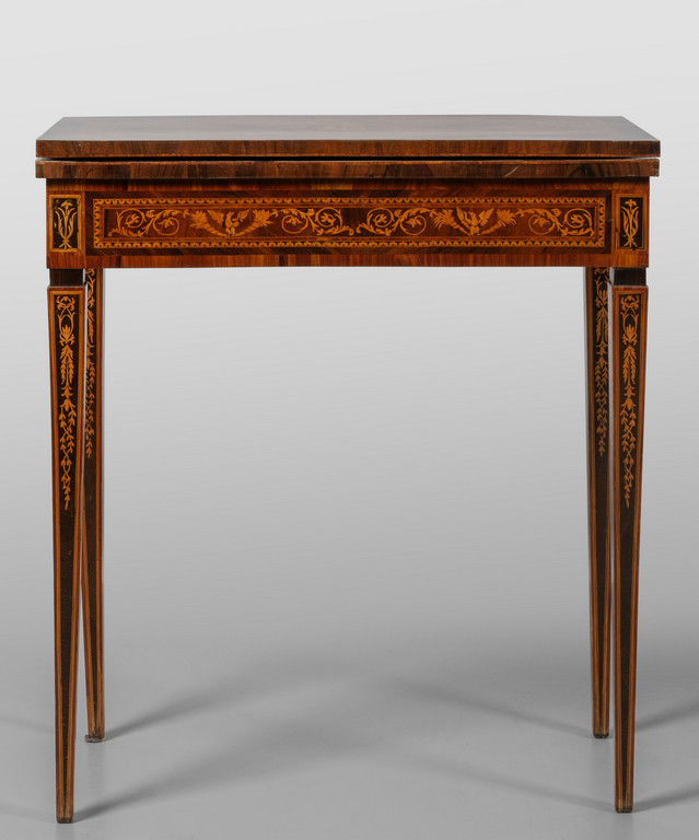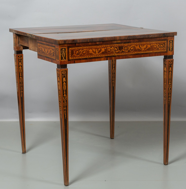 Tavolo da gioco Luigi XVI con piano apribile lastronato in legni vari Lombardia II metà sec.XVIII