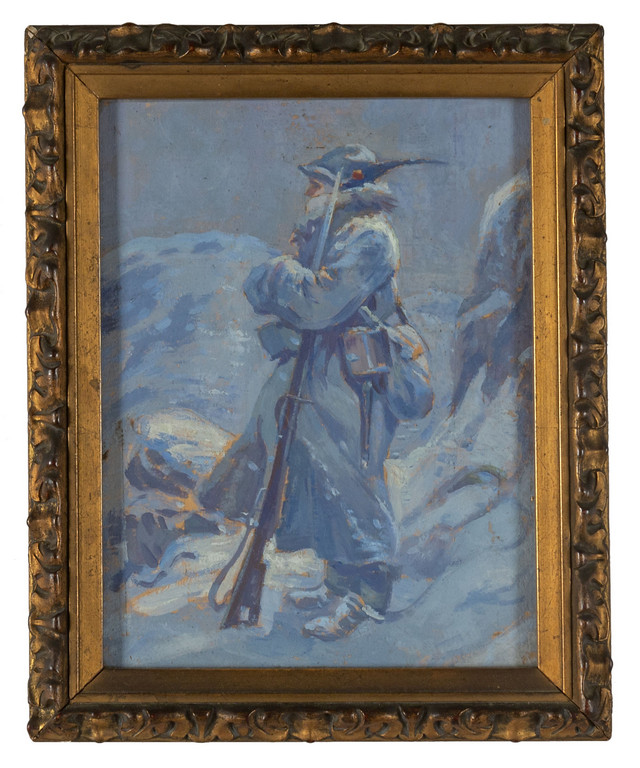 'Alpino di guardia' olio su cartone I metà sec.XX