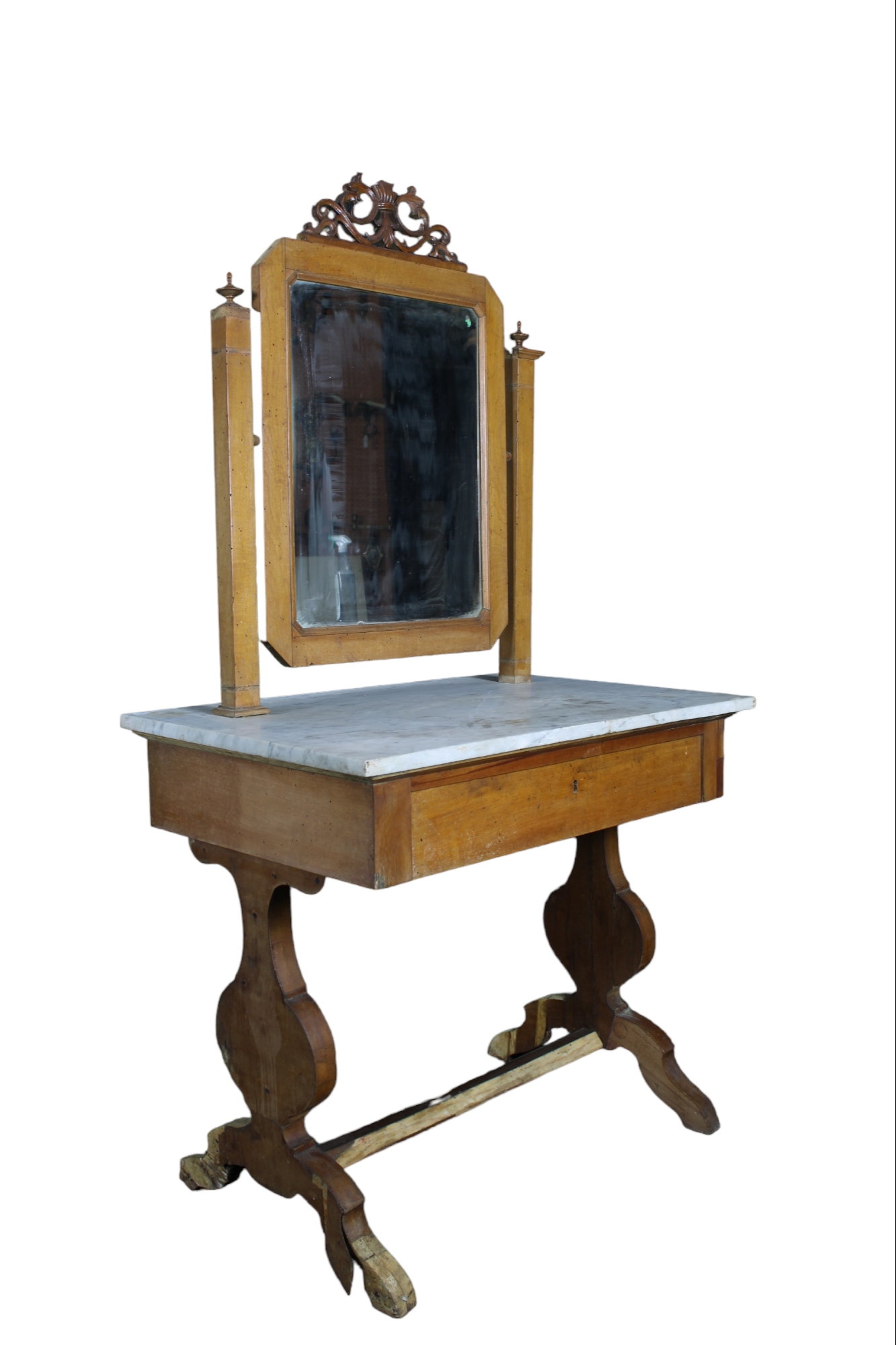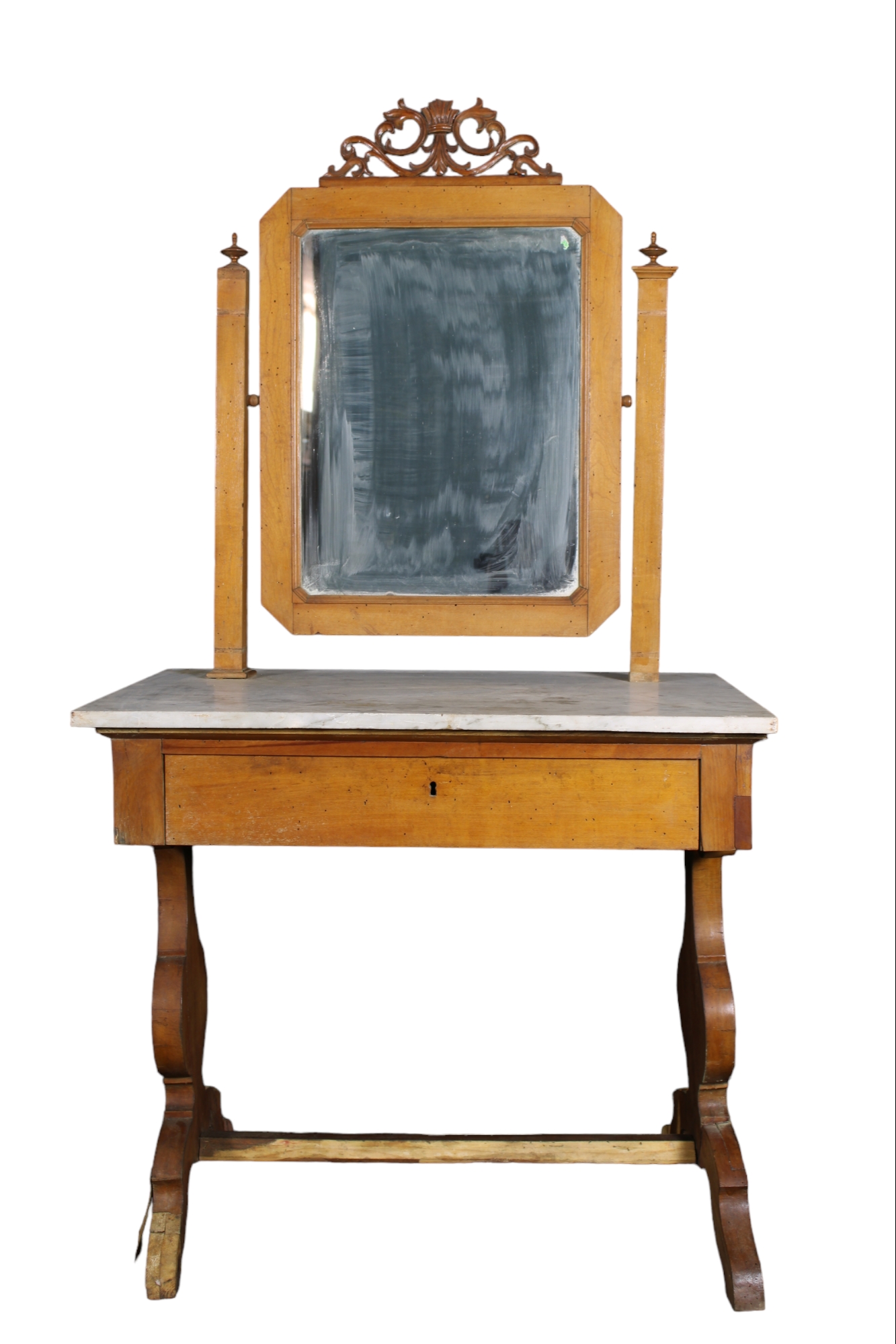 TOLETTA in ciliegio con piano in marmo bianco di Carrara, usure e mancanze Sicilia XIX secolo h cm 160 x 84 x 55,5