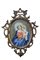 PITTURA SU VETRO DI FORMA OVALE Raffigurante Madonna con Bambino dentro bella cornice riccamente traforata, scolpita e dorata ad argento e mecca Sicilia XVIII secolo h cm 32 x 25/ cornice h cm 60 x 45. Presenta lesione