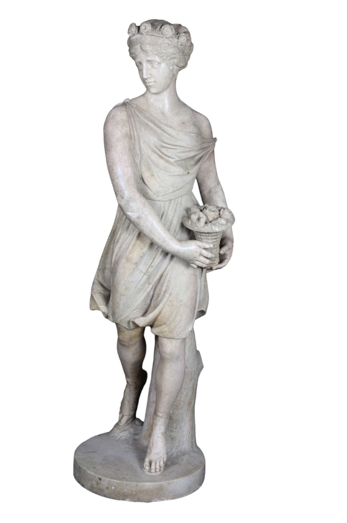 IMPORTANTE SCULTURA in granito rosa raffigurante Flora Milano 1780-1810 circa h cm 130 x 41