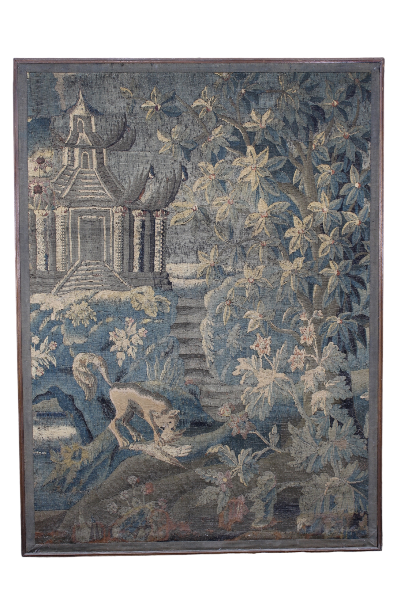 ARAZZO in succo d'erba raffigurante paesaggio con animali Italia XIX secolo h cm 230 x 170