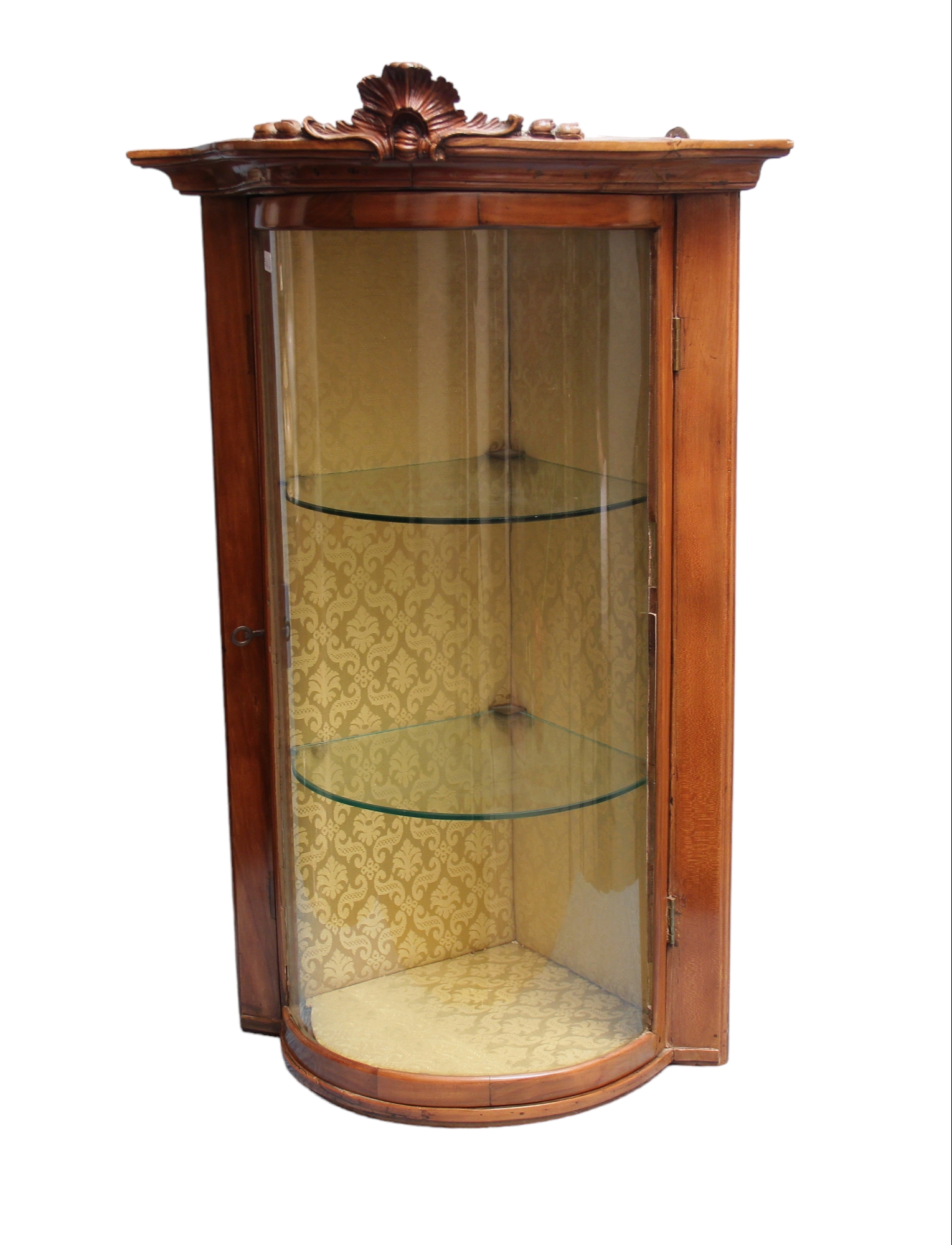 ANGOLIERA PENSILE in legno di noce con cimasa scolpita Italia XVIII secolo h cm 70 x 49 x 38