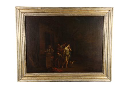 OLIO SU TELA raffigurante Episodio Biblico scuola italiana XVIII secolo h cm 56 x 75