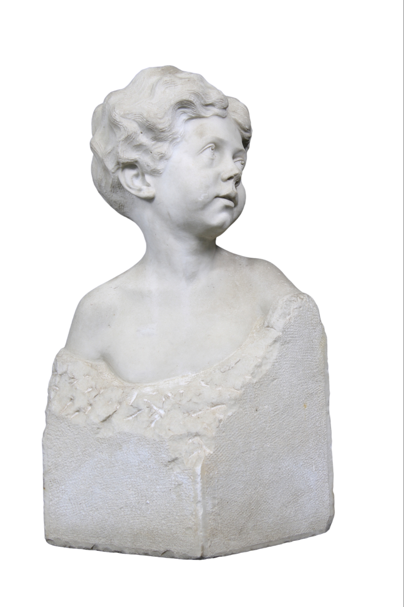 SCULTURA in marmo bianco di Carrara raffigurante mezzo busto di fanciullo, sulla base posteriore reca monogramma non decifrabile maestranze italiane XIX/XX secolo h cm 62 x 38 x 29