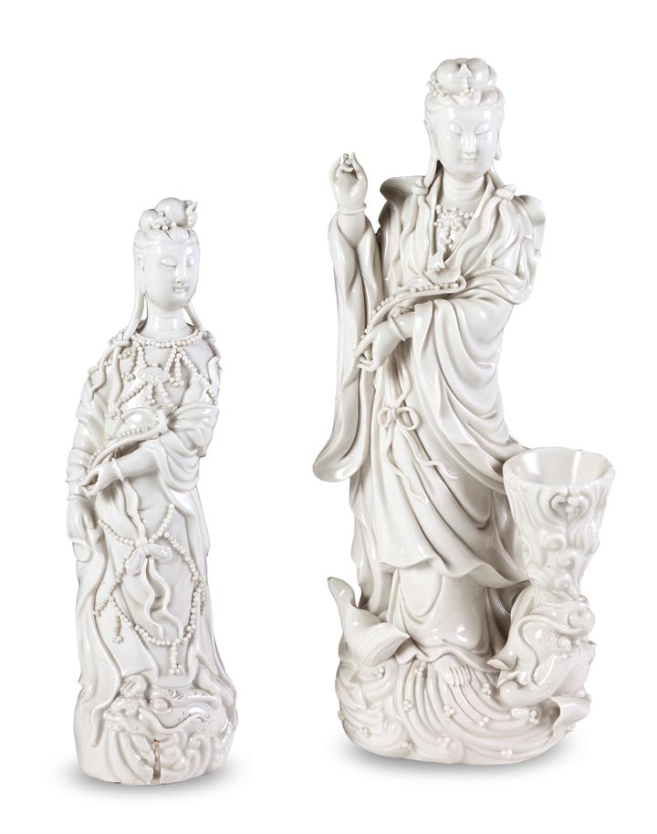 Coppia di statuine in blanc de Chine, Cina XIX secolo, rappresentanti Guanyin
