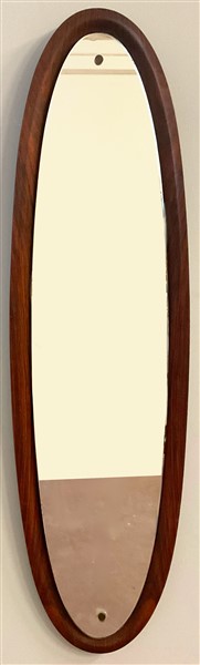 Specchiera ovale con cornice in legno compensato curvato al vapore. Italia, anni '60. (cm 39x140) (difetti)