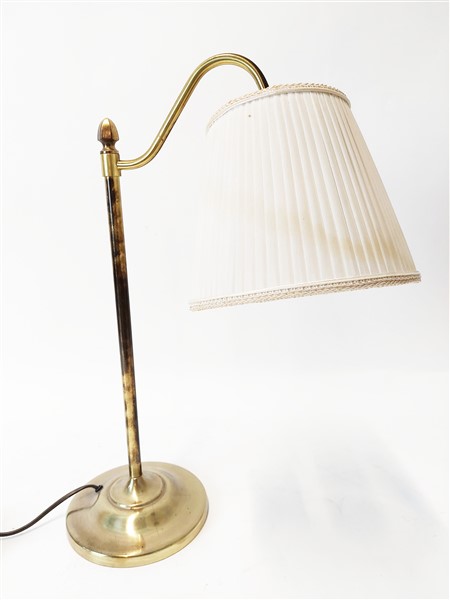 Lotto composto da una lampada da tavolo in ottone con paralume in stoffa plissé