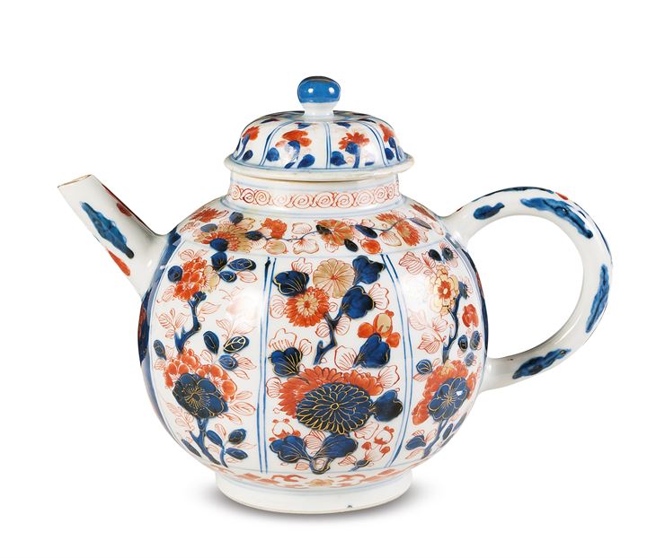 Teiera in porcellana, Cina, seconda metà XVIII secolo, decorata a motivi Imari